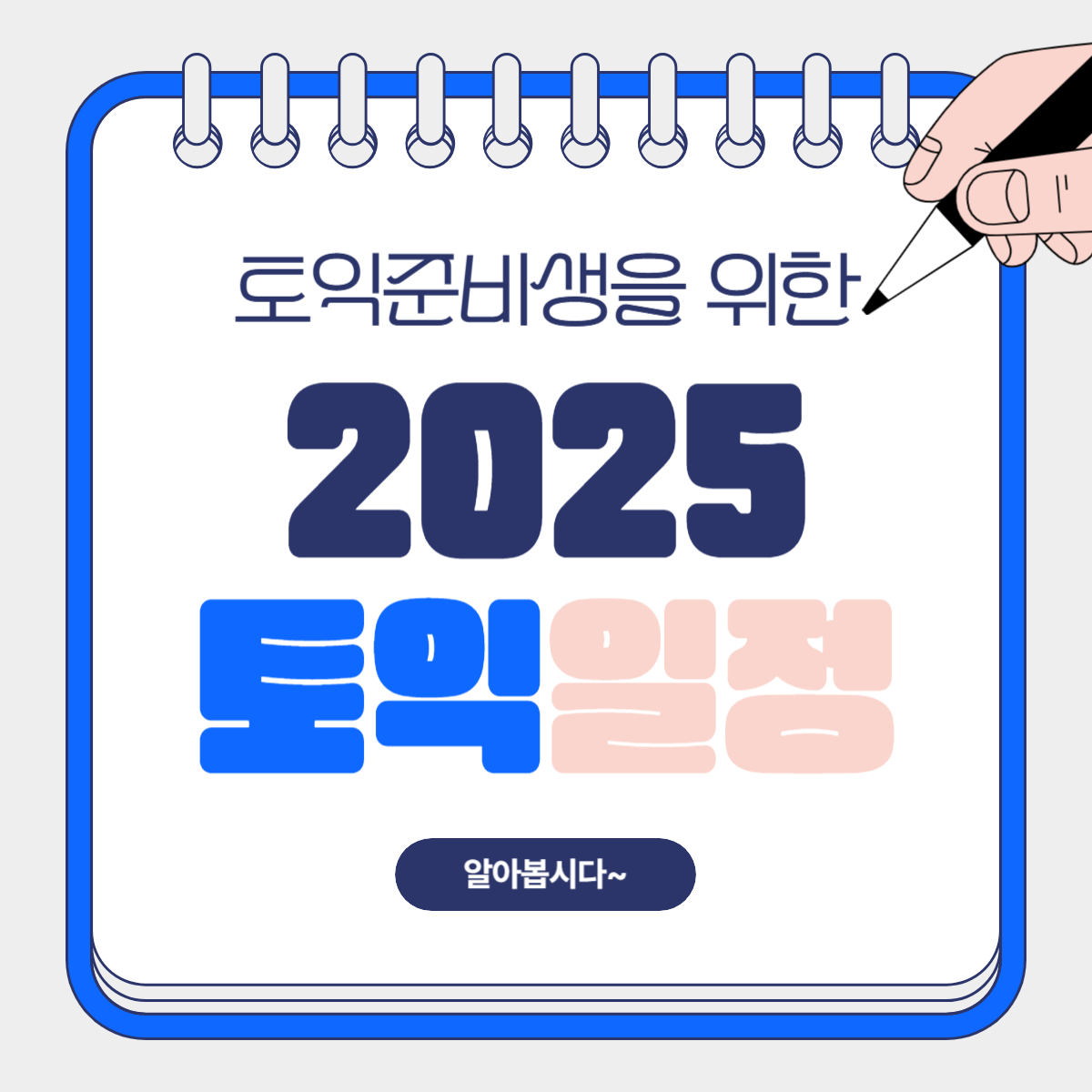 2025년은 푸른 뱀띠의 해 (을사년)입니다. 벌써 추운 겨울이 다가오고 2024년도 얼마 남지 않았습니다. 2024년도 끝나가면서, 내년 2025년도에 다시 뛸 준비를 하고 계시는 분들도 많으실 겁니다. 다가오는 2025년과 같이 2025년의 토익시험 일정이 또한 발표되었는데, 내년 2025년 토익시험 일정에 대해서 알아보겠습니다.